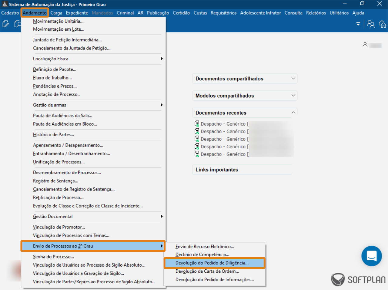 Como realizar um pedido de diligência ao 1º grau no SAJ SG Tribunais?