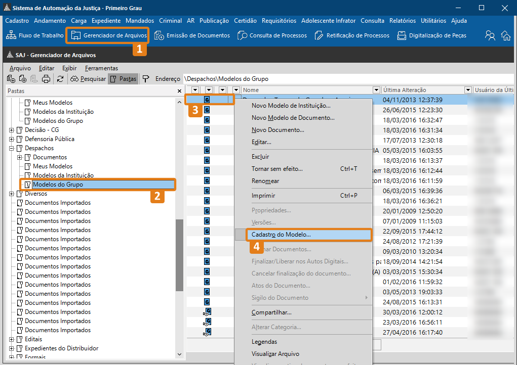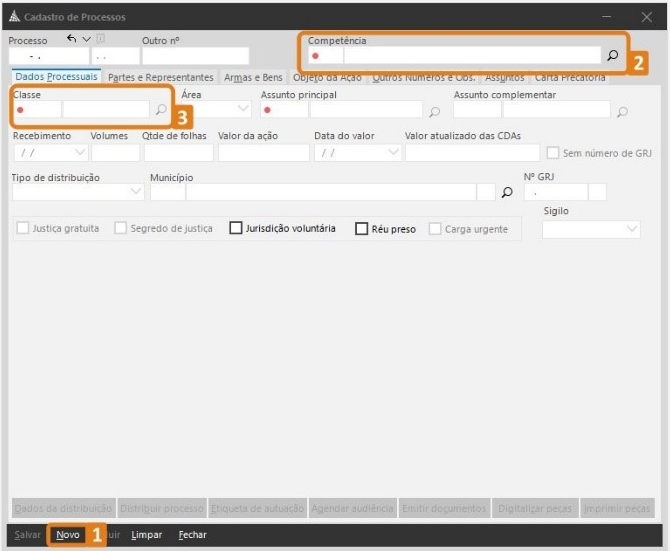 Por meio da tela de retificação de processos, você poderá realizar alterações quanto aos dados processuais, partes e representantes, armas e bens, objeto da ação, dentre outros.