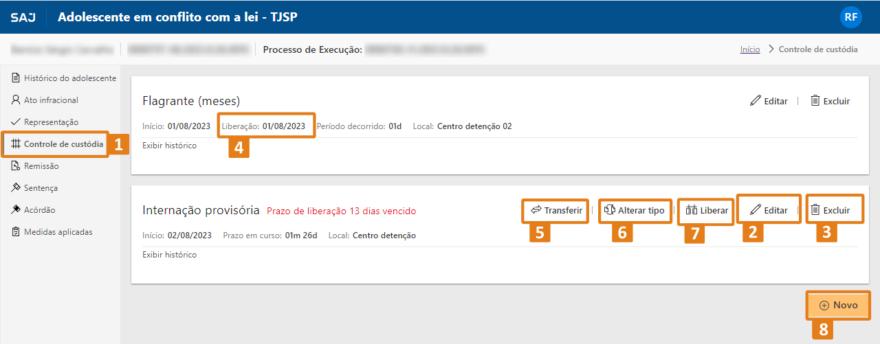 Como cadastrar, editar ou excluir o Controle de Custódia no painel do Adolescente em Conflito com a Lei (ACL) no SAJ PG Tribunais?Cliente: TJSP