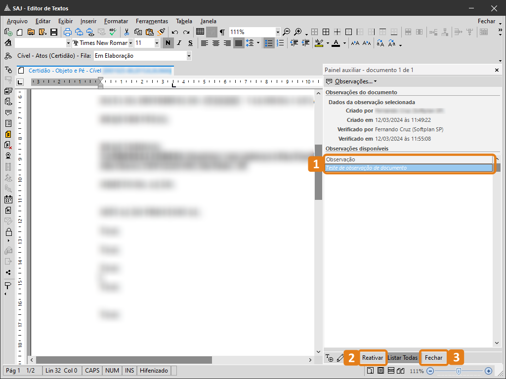 3.2 É possível alterar o Tipo de Procedente (2) para Parcialmente Procedente ou Improcedente, se necessário.
