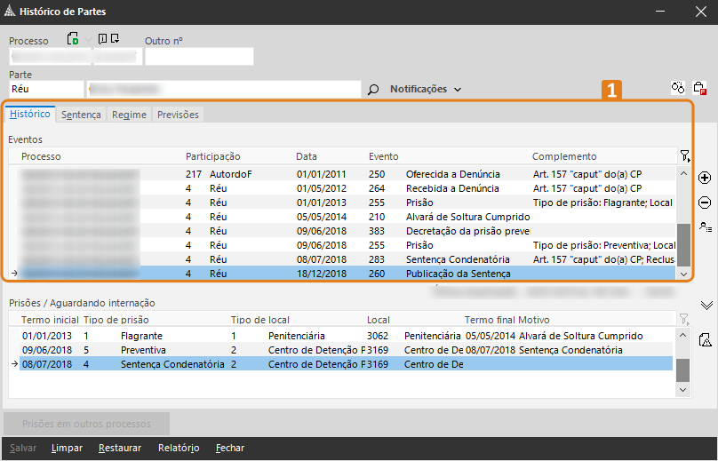 Versão: 2.0.1-X | Atualizado em: 03/02/2020O Histórico de partes tem a funcionalidade de controlar todos os eventos que ocorrem no processo criminal.