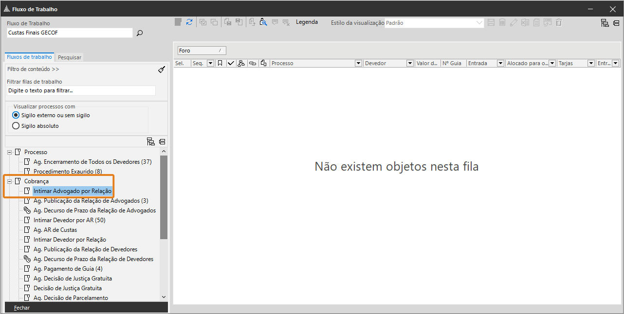 Os devedores que não possuem advogado são movidos para a fila "Intimar devedor por AR". Para saber mais acesse o link: