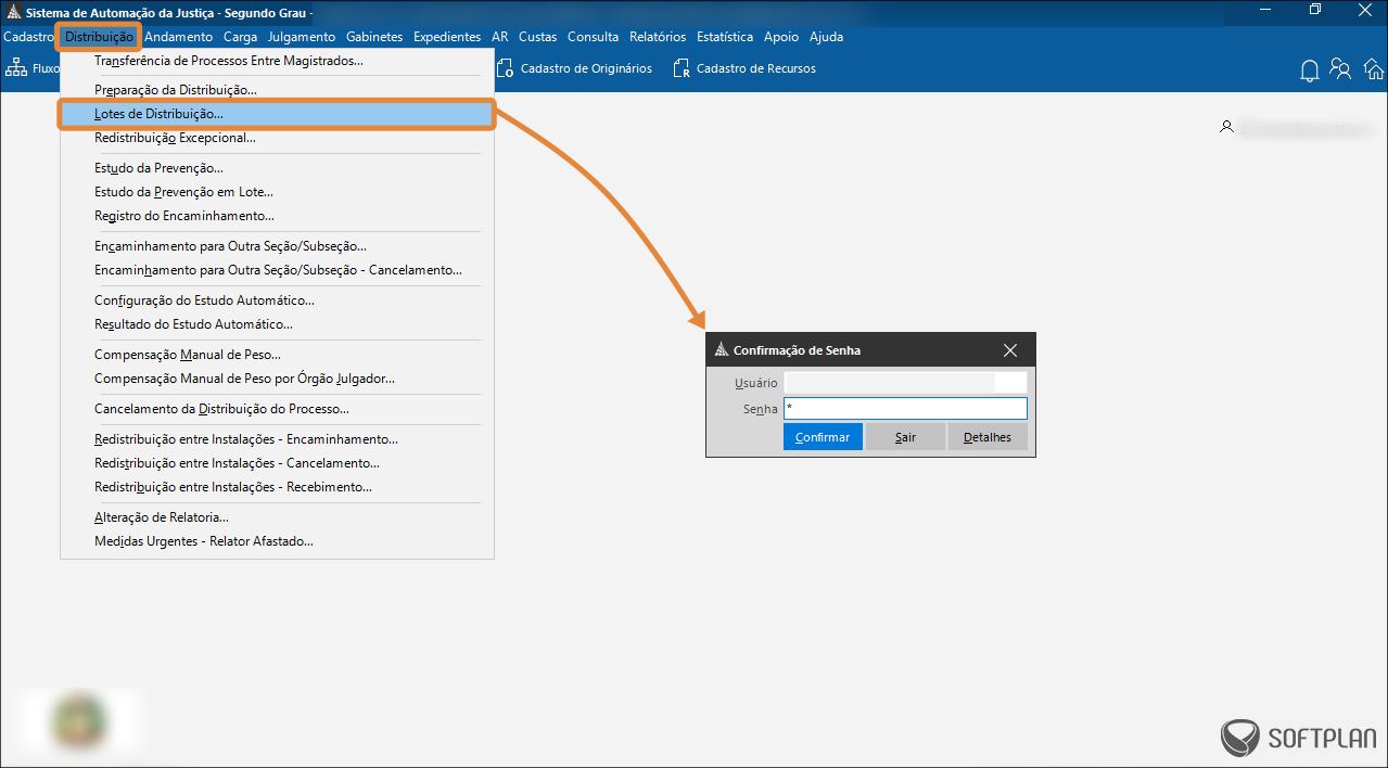 1. Acesse o menu Distribuição, submenu Lotes Distribuição. O sistema solicitará que informe novamente a senha, por questões de segurança.