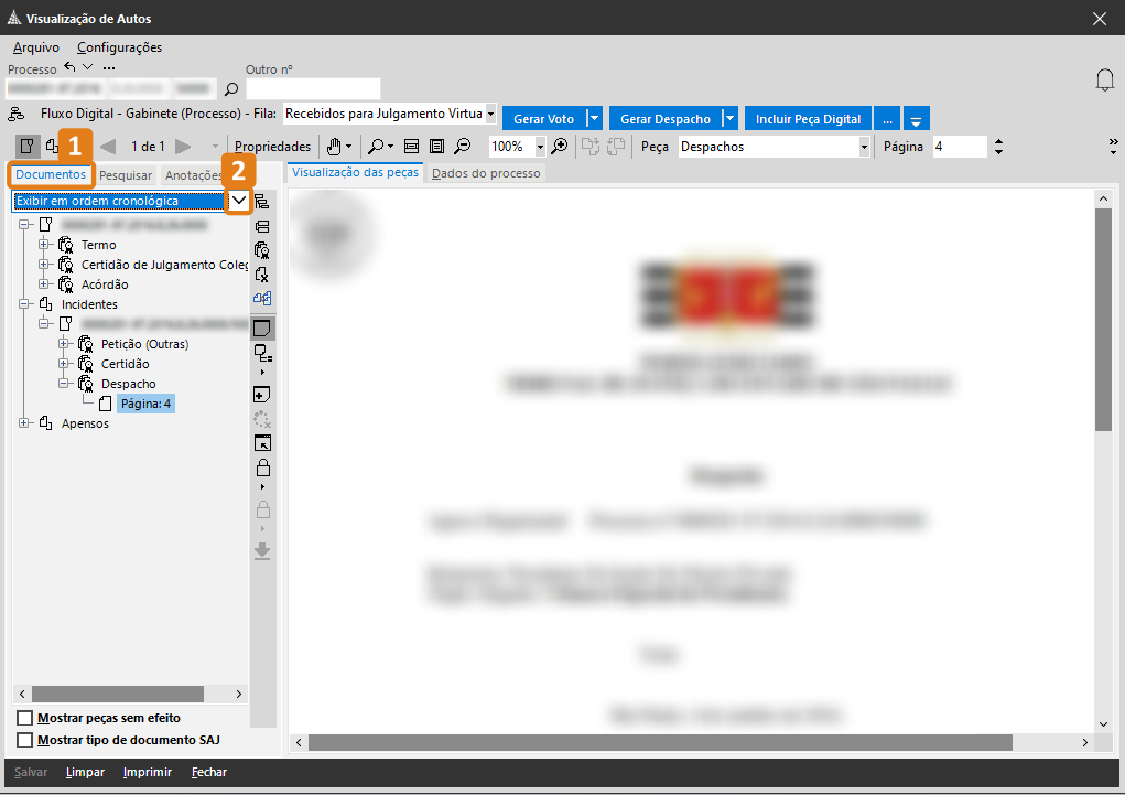 A Pasta Digital apresenta diversas funcionalidades para facilitar a visualização e análise dos documentos, uma delas é a “Apresentar somente peças do SG”.