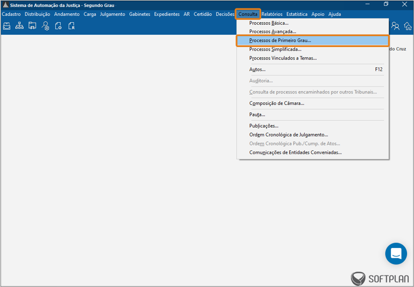 “Consulta o processo de primeiro grau informado no cadastro do processo originário de 2º Grau”.