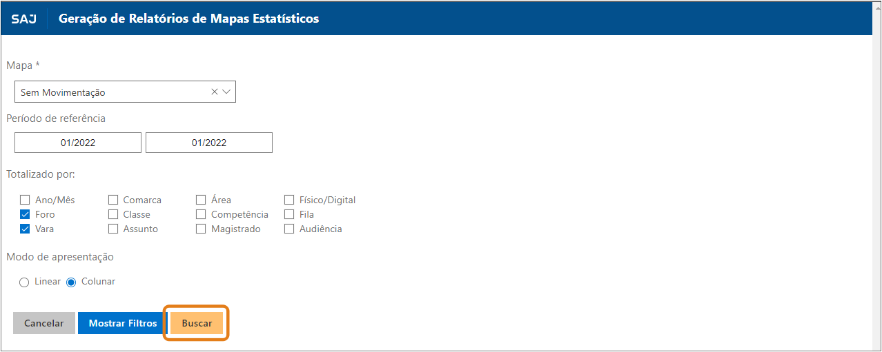 8. Com os filtros definidos, selecione a opção Buscar para emitir o relatório.