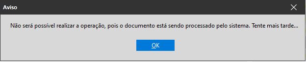4. Caso o sistema emita a mensagem que "não foi possível realizar a operação, pois o documento está sendo processado pelo sistema", verifique se objeto já foi assinado e liberado.