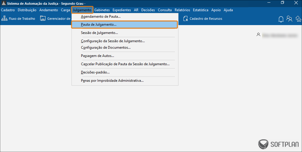 1. No SAJ SG, acesse o menu Julgamento e clique no submenu Pauta de Julgamento.